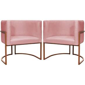 Kit 2 Poltronas Para Sala De Recepção Luna Suede Cores Base De Ferro Bronze - Rosê, Suede - Prata