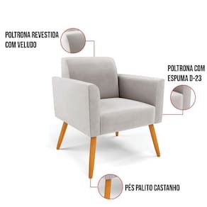 Todo mundo gosta de um ambiente bem decorado, e se for novidade melhor ainda não é mesmo? A D'Rossi, além de entregar beleza, qualidade e confiança aos clientes, ela dispõe das melhores opções em produtos, disponíveis no mercado! Se você quer um produto sofisticado, opte pela Poltrona Marisa. Ela dispõe de um tom lindo no Cinza, uma cor leve, neutra e delicada que combina com qualquer estilo de decoração. Esta mobília fica perfeita na sala, escritório, quarto, varanda coberta e onde mais preferir! Sua estrutura é feita em madeira reforçada de eucalipto proveniente de reflorestamento. No assento/encosto contém um revestimento no tecido Veludo, com estofamento em espuma prorelax D-23, garantindo maior conforto ao usuário. A sustentação da peça é dada pelos Pés Palito Castanho, garantindo uma resistência melhor, para relaxar o dia todo com mais comodidade. A Poltrona Marisa é ideal, para dar aquele realce que seu ambiente precisa. Tenho certeza que, esse móvel é a melhor compra que você irá fazer. Garanta já seu Kit 2 Poltronas e se acomode da melhor maneira possível!