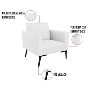 Todo mundo gosta de um ambiente bem decorado, e se for novidade melhor ainda não é mesmo? A D'Rossi, além de entregar beleza, qualidade e confiança aos clientes, ela dispõe das melhores opções em produtos, disponíveis no mercado! Se você quer um produto sofisticado, opte pela Poltrona Marisa. Ela dispõe de um tom lindo no Branco, uma cor leve, neutra e delicada que combina com qualquer estilo de decoração. Esta mobília fica perfeita na sala, escritório, quarto, varanda coberta e onde mais preferir! Sua estrutura é feita em madeira reforçada de eucalipto proveniente de reflorestamento. No assento/encosto contém um revestimento no tecido Corino, com estofamento em espuma prorelax D-23, garantindo maior conforto ao usuário. A sustentação da peça é dada pelos Pés Villach, garantindo uma resistência melhor, para relaxar o dia todo com mais comodidade. A Poltrona Marisa é ideal, para dar aquele realce que seu ambiente precisa. Tenho certeza que, esse móvel é a melhor compra que você irá fazer. Garanta já seu Kit 2 Poltronas e se acomode da melhor maneira possível!