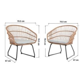 Marca: Nattural Imports Modelo: Sicilia Material: Aco e rattan Cor: Bege Tonalidade: Bege Quantidade de poltronas: 2 Estilo: Natural Uso indicado: Areas externas com cobertura Dimensoes: 78,5 cm x 67 cm x 70,6 cm cada poltrona Peso: 7 Kg conjunto Acompanha almofadas de tecido para assento Fabricadas em rattan e aco, estas poltronas oferecem resistencia as intemperies, garantindo durabilidade e conforto para seus momentos de descanso. Com um design elegante e artistico, elas complementam perfeitamente qualquer espaco exterior, seja jardim, varanda ou area de lazer.