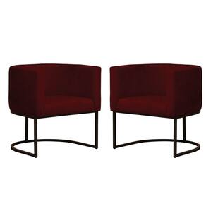 Kit 2 Poltronas Reforçada Decorativa Sala Gabriela Base Ferro Preta Suede - Marsala