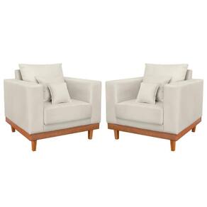 Você receberá 2 volumes, ou seja, um Kit 2 Poltronas Reforçada Suede Pés Base Madeira + Almofadas