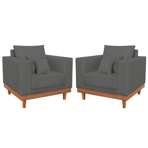 Você receberá 2 volumes, ou seja, um Kit 2 Poltronas Reforçada Suede Pés Base Madeira + Almofadas