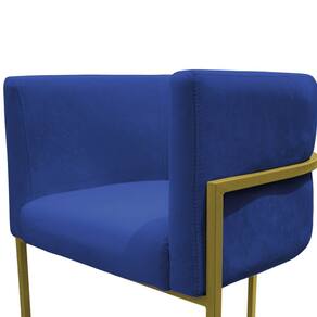 Kit 2 Poltronas Reforçadas Decorativa Sala Carla Base Ferro Dourada Suede Azul Marinho