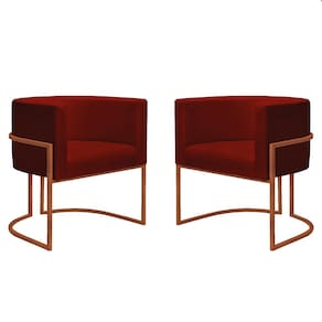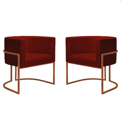 Kit 2 Poltronas Reforçadas Decorativa Sala Nayara Base Ferro Bronze Suede Marsala
