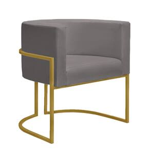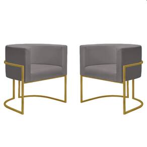 Kit 2 Poltronas Reforçadas Decorativa Sala Nayara Base Ferro Dourado Suede Capuccino - Cinza