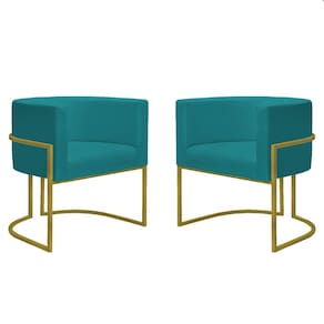 Kit 2 Poltronas Reforçadas Decorativa Sala Nayara Base Ferro Dourado Suede - Azul