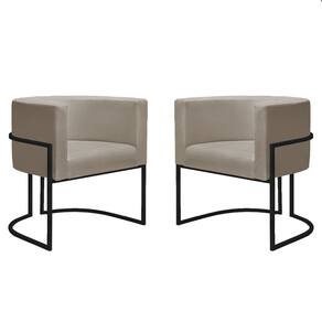 Kit 2 Poltronas Reforçadas Decorativa Sala Nayara Base Ferro Preto Suede - Bege
