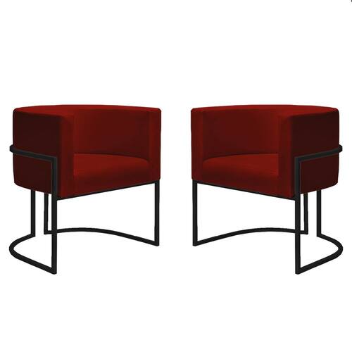 Kit 2 Poltronas Reforçadas Decorativa Sala Nayara Base Ferro Preto Suede - Marsala