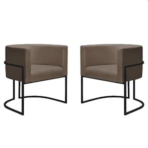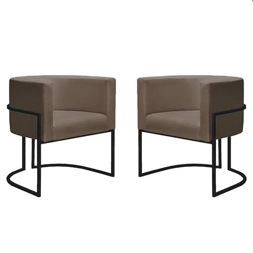 Kit 2 Poltronas Reforçadas Decorativa Sala Nayara Base Ferro Preto Suede - Marrom Cacau