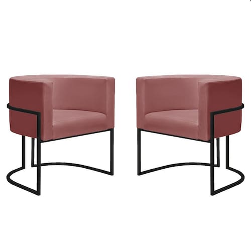 Kit 2 Poltronas Reforçadas Decorativa Sala Nayara Base Ferro Preto Suede