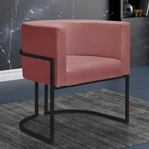 Kit 2 Poltronas Reforçadas Decorativa Sala Nayara Base Ferro Preto Suede - Rosê