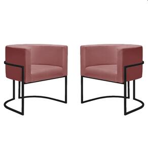 Kit 2 Poltronas Reforçadas Decorativa Sala Nayara Base Ferro Preto Suede - Rosê