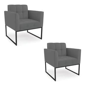 Poltrona Sala Decorativa Kit 2 Elisa Sintético Grafite Preto D'Rossi