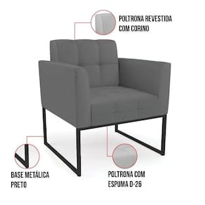 Relaxe com a poltrona D'Rossi Elisa, um kit com 2 unidades decorativas para sala, ideal para compor ambientes aconchegantes e funcionais. A combinação da estrutura em madeira de eucalipto com espuma de alta densidade D-26 no assento oferece conforto equilibrado e boa sustentação no uso diário. O revestimento em couro sintético grafite com costura quadriculada e detalhe em matelassê, aliado à base metálica preta em aço carbono, resulta em visual contemporâneo e estável. Com encosto e assento fixos, braços integrados e altura de assento de 45 cm, é uma opção versátil para sala de estar, escritório, área de leitura ou consultórios. Cada poltrona suporta até 120 kg, unindo resistência, praticid?