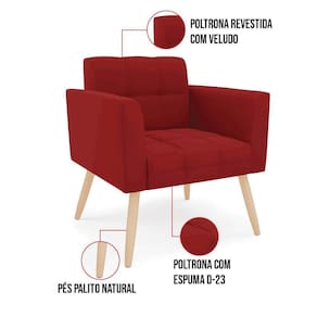 Poltrona Decorativa Elisa Kit 2 Veludo Marsala D03 Pés Palito Natural D'Rossi
