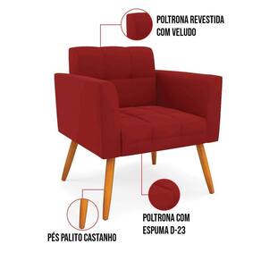 Poltrona Sala Decorativa Kit 2 Elisa Veludo Marsala D03 D'Rossi