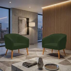 Relaxe com a poltrona D'Rossi Stella, desenvolvida para oferecer conforto e estilo em salas e ambientes de recepção. O kit com 2 unidades em sintético PU verde combina design decorativo com praticidade para o uso diário. A estrutura em madeira de eucalipto, espuma D-26 no assento e pés palito em madeira garantem sustentação firme e sensação aconchegante ao sentar. Com encosto e assento fixos, apoio para os braços e capacidade para até 120 kg por poltrona, é ideal para longas conversas e momentos de descanso. Versátil, se adapta a sala de estar, escritório, área de leitura e consultórios, valorizando a decoração com visual contemporâneo.