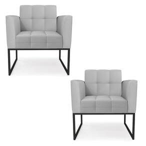 Poltrona Sala Decorativa Kit 2 Elisa Couro Sintético Cinza Base Industrial Preta D'Rossi