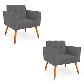 Poltrona Elisa Kit 2 Couro Sintético Grafite D03 Pés Palito Sala de Estar D'Rossi