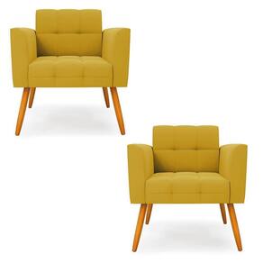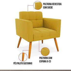 Poltrona Elisa Kit 2 Sala Veludo Mostarda Pés Palito Castanho D'Rossi