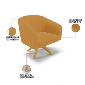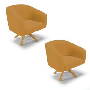 Poltrona Sala Decorativa Kit 2 Stella Giratória Veludo Mostarda D'Rossi