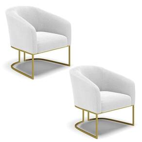 Kit 2 Poltronas Stella Bouclê Base Metálica Industrial Dourado - D'rossi Cor Off White