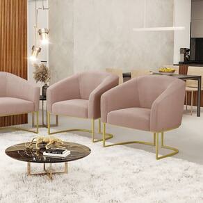 Kit 2 Poltronas Stella Bouclê Base Metálica Industrial Dourado - D`Rossi - Rosê