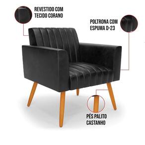 Quer uma decoração única e sofisticada? A Poltrona Viena é ideal para quem está em busca de um móvel versátil e diferenciado. Esse tipo de peça é ideal para ambientes modernos e descontraídos. Vem com uma ideia totalmente diferente, devido sua curva e forma suave, os detalhes gomados do tecido são tendências de decoração atuais. O tom Preto vem ganhando cada vez mais espaço no mercado, uma cor que traz elegância e combina com vários tipos de decoração. Uma dica legal de complemento é escolher almofadas que combinem com a poltrona. Sua estrutura é confeccionada em madeira de eucalipto proveniente de reflorestamento, o estofamento do assento é composto de espuma prorelax D-28 no encosto, e é revestido em Corano um tecido aconchegante, resistente e extremamente luxuoso. Sua sustentação é dada pelos tradicionais Pés Palito Castanho, suportando em média até 115 Kg. Crie um lindo efeito visual, em qualquer lugar da sua casa ou escritório! Garanta já seu Kit 2 Poltronas Viena.