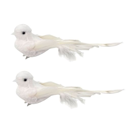Kit 2 Pombas Brancas Natal Plumas e Lantejoulas 12cm