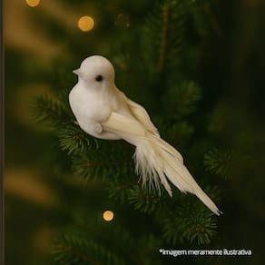 Encante sua decoração de Natal com este kit com 2 pombas decorativas, perfeitas para trazer leveza, paz e sofisticação aos seus ambientes. Cada pomba mede 12cm de comprimento por 4cm de altura e é cuidadosamente revestida com tecido tipo felpudo branco, além de penas artificiais e detalhes em lantejoulas, que adicionam brilho sutil e elegante.