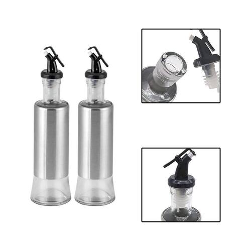 Kit 2 Porta Azeite Vinagre Com Dosador 300Ml Inox Vidro