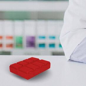 Porta comprimidos retangular com 8 compartimentos, tampa articulada, com dias da semana. Feito em Plástico Premium PP atóxico, resistente e cores com pigmento de efeito metalizado. Imagens meramente ilustrativas. Marca: Não Informado