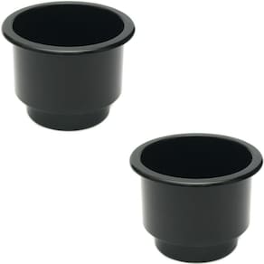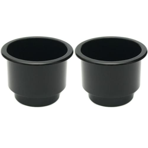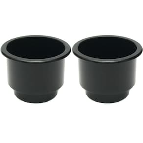 Porta copo e garrafas em pvc preto de embutir 2un Porta copo de embutir para embarcações em pvc na cor preta, com excelente resistência ás adversidades do ambiente marinho. Possui abertura larga que comporta garrafas maiores e apresenta desnível interno com estreitamento para melhor acomodar as garrafas e copos menores.