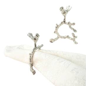 Kit 2 Porta Guardanapo Pássaro Prata Galho Mesa Posta