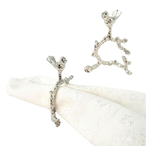 Kit 2 Porta Guardanapo Pássaro Prata Galho Mesa Posta Kit com 2 Porta Guardanapos Prata Pássaro no Galho Elegância e Charme para Sua Mesa