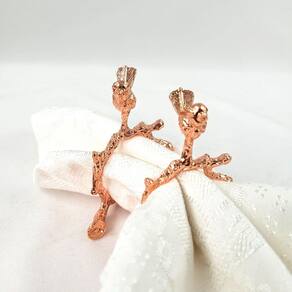 Kit 2 Porta Guardanapo Pássaro Rose Galho Mesa Posta Kit com 2 Porta Guardanapos Rose Pássaro no Galho Elegância e Charme para Sua Mesa