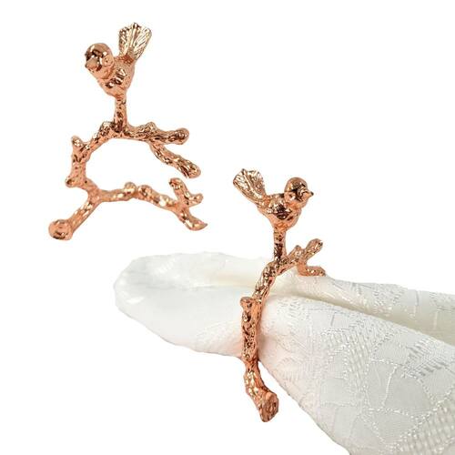 Kit 2 Porta Guardanapo Pássaro Rose Galho Mesa Posta Kit com 2 Porta Guardanapos Rose Pássaro no Galho Elegância e Charme para Sua Mesa