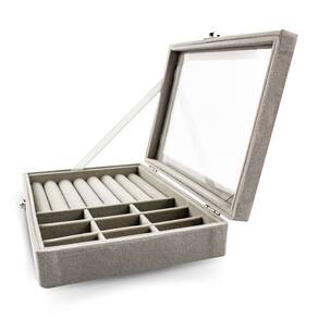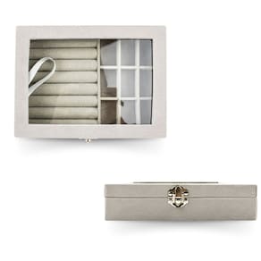 Contém: 02 - Porta Joias com divisórias removíveis, tampa acrílica e forro de veludo cinza