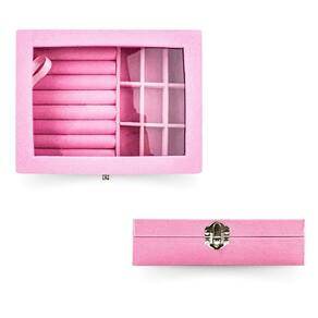 Contém: 02 - porta joias com divisórias removíveis, tampa acrílica e forro de veludo rosa