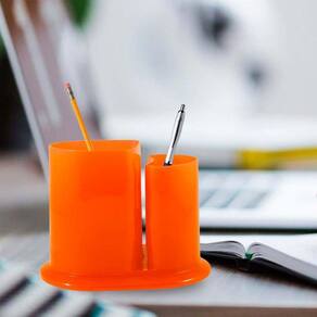 Porta Lápis Duo feito em Plástico Premium PP resistente, com duas cavidades, espaço para cartão de visita, prático, uma excelente opção para organizar lápis, canetas, marcadores e outros acessórios na mesa de trabalho e/ou estudo. Imagens meramente ilustrativas. Marca: Bb Store Ean: 7908567023285