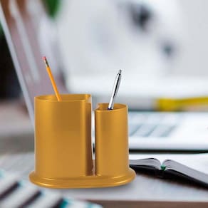 Porta Lápis Duo feito em Plástico Premium PP resistente, cores com pigmento de efeito metalizado, com duas cavidades, espaço para cartão de visita, prático, uma excelente opção para organizar lápis, canetas, marcadores e outros acessórios na mesa de trabalho e/ou estudo. Imagens meramente ilustrativas. Marca: Bb Store Ean: 7908567023469