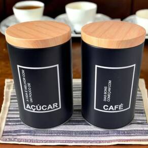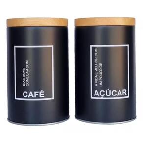 Kit 2 porta mantimentos pote grande café e açucar decoração Cor: pretof0966 Conjunto de latas porta mantimentos tamanho grande cabe 1 quilo