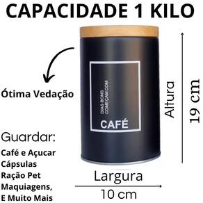 Material: metal Dimensões: 19 cm x 10 cm Capacidade: Lata de café: 1 quilo Lata de açúcar: 1 quilo