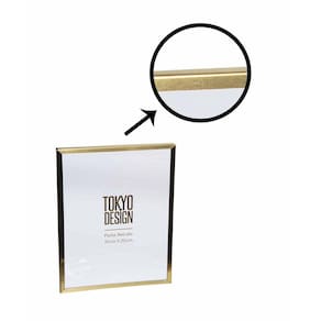 Porta retrato em metal com vidro, com excelente qualidade. Pintura na cor dourado escovado.