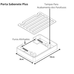 Porta Sabonete: Altura 1.6cm x Profundidade 8cm x Largura 10cm