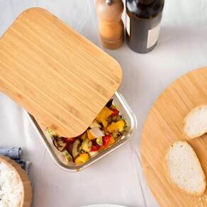 Kit 2 Pote Hermético Vidro Tampa De Bambu 1040Ml