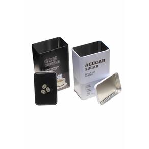 Características: Tamanho: altura de 16cm, largura de 9cm e profundidade de 6cm Material: Metal com pintura Capacidade 500ml Quantidade: 2 unidades (Açúcar e Café)