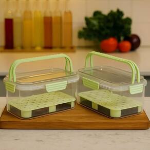 Com design funcional e tampa com vedação hermética, os potes garantem a preservação dos alimentos, evitando a entrada de ar e ajudando a manter tudo fresco por mais tempo. A base com pés elevados e bandeja interna facilita a separação de líquidos, evitando o contato direto dos alimentos com a umidade.