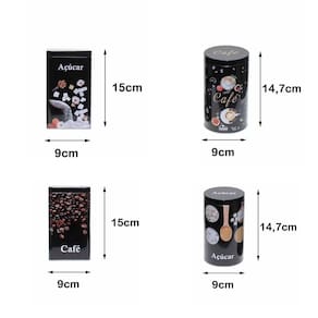 Kit 2 Potes Porta Mantimento Potes Preto de Café e Açúcar